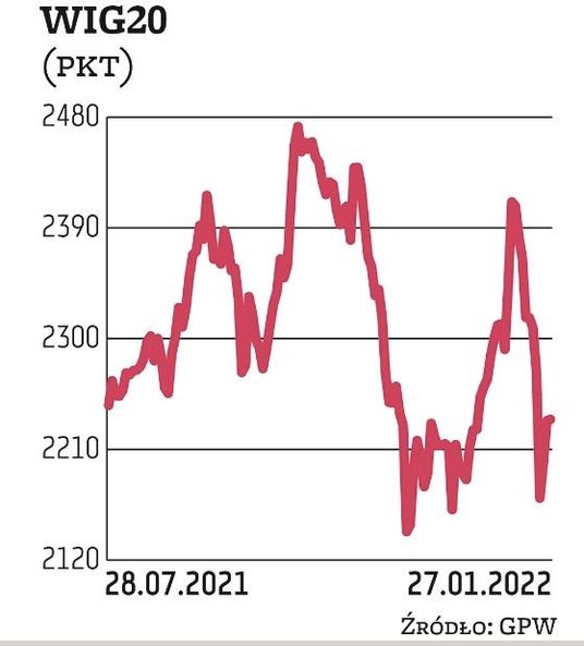 Pierwsze kilkadziesiąt minut czwartkowej sesji przyniosło spadki WIG20, chwilami nawet o około 30 pkt, jednak w kolejnych godzinach sytuacja poprawiała się. Jeszcze przed południem na indeksie dużych spółek zaczął się przebijać kolor zielony. Słabszy początek dnia wpisywał się w sytuację na innych europejskich rynkach. Dla przykładu niemiecki DAX po kilkudziesięciu minutach tracił aż 1,6 proc. Ponure nastroje w Europie były oczywiście konsekwencją ochłodzenia atmosfery na Wall Street w związku z wystąpieniem Jerome'a Powella. Przewodniczący Fedu zapowiedział, że Rezerwa Federalna zamierza rozważyć podniesienie stóp procentowych w marcu, o ile będą do tego odpowiednie warunki (tj. nie zaszkodzi to tamtejszemu rynkowi pracy).