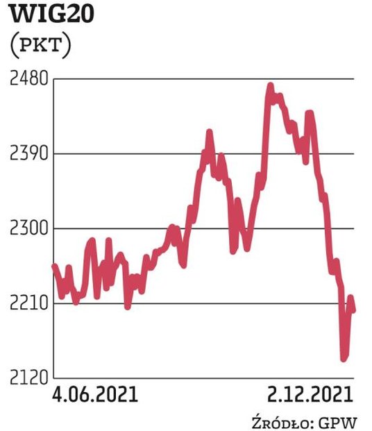 Przyczyn analitycy doszukiwali się w wykryciu nowego wariantu koronawirusa w USA oraz zapowiedziach Fedu co do nieco szybszego zacieśniania polityki monetarnej. Analitycy obawiają się podwyżek stóp przy jednocześnie wysokiej inflacji. Stąd od początku czwartkowej sesji na Starym Kontynencie przeważał kolor czerwony. Szczególnie słabo prezentował się niemiecki DAX, który szybko dotarł do około 1,75-proc. zniżki. Na krajowym rynku zwyżki można było zaobserwować m.in. na spółkach tzw. covidowych. W miarę stabilnie prezentowały się z kolei banki. Najsłabiej rozpoczął sesję sektor energetyczny. Obraz WIG20 wyglądał bardzo ponuro. Dzień wcześniej indeks domknął spadkową lukę z piątku, jednak popyt nie zdołał zrobić kroku dalej. Czwartkowe cofnięcie wyglądało jak zapowiedź kolejnego większego ruchu spadkowego. W kolejnych godzinach WIG20 stopniowo zniżkował, docierając do 2180 pkt. Tu w końcu popyt zareagował, wyciągając indeks dużych spółek nawet tuż powyżej 2200 pkt. Sesja zakończyła się więc spadkiem WIG20 o około 0,69 proc., jednak obrona okrągłego pułapu nie pozwala całkiem zgasić wiary byczej strony rynku w odreagowanie. Poprawa notowań WIG20 to zasługa m.in. firm finansowych. Z drugiej strony kolejne minima pogłębiało Allegro.