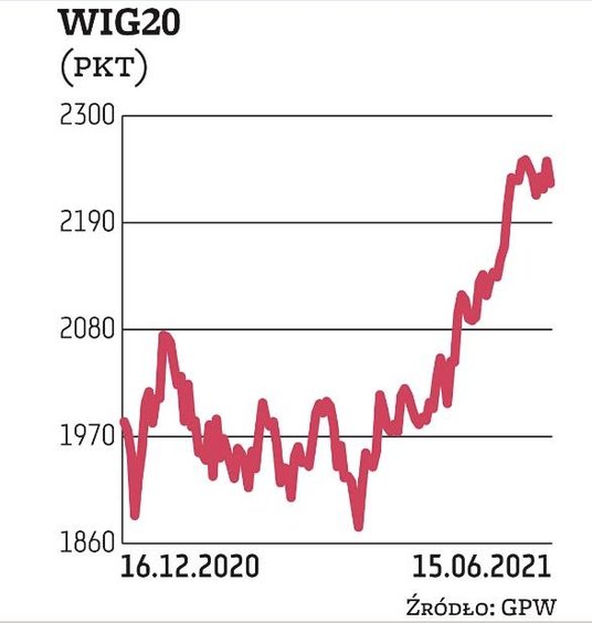 Początek sesji był bardzo optymistyczny. Indeks największych spółek rósł nawet o blisko 0,7 proc. Nastroje zaczęły się jednak psuć i indeks blue chips zaczął się osuwać. Ciążył przede wszystkim KGHM. Miedziowy gigant prawdopodobnie stanął na celowniku sprzedających z powodu spadających notowań czerwonego metalu. W Londynie cena miedzi w kontraktach trzymiesięcznych spadała po południu o około 4 proc., do poniżej 9,6 tys. USD za tonę. Metal ten nie był tak tani od końca kwietnia. KGHM staniał ostatecznie o 5,8 proc. Z kolei gwiazdą w gronie największych spółek był CD Projekt. Duże zainteresowanie inwestorów jego akcjami wynikało ze spekulacji o możliwym, rychłym powrocie „Cyberpunka 2077" do PS Store. Dzięki temu notowania CD Projektu rosły nawet o 9,5 proc., jednak ostatecznie akcje zdrożały o 6,5 proc. Wystrzał notowań CD Projektu nie zdołał wynieść indeksu nad kreskę i WIG20 spadł o 1 proc. Indeks średnich spółek obniżył się o 0,8 proc. Ciągnięty był w dół m.in. przez banki oraz spółki takie jak PKP Cargo i XTB. sWIG80 spadł o 1 proc. W tym gronie przegranymi byli Cognor i Mabion. W przypadku biotechnologicznej spółki inwestorzy realizowali zyski z poprzedniej sesji. Kurs Mabionu rósł w poniedziałek nawet o ponad 12 proc. Powodem były informacje o wysokiej skuteczności szczepionki Novavaksu, której składniki mają być wytwarzane w fabryce Mabionu.
