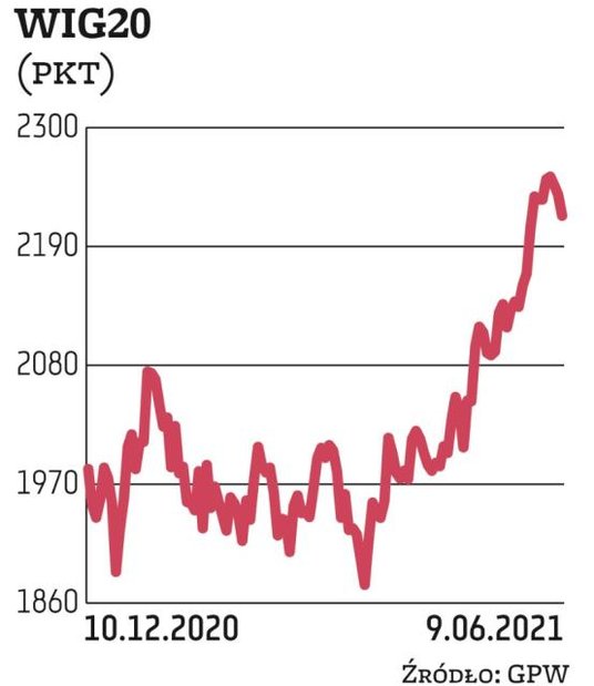 Indeks WIG20 ma z czego spadać. W środę pomogły mu przede wszystkim spółki energetyczne, górnicze i telekomunikacyjne. Te trzy sektory były najsłabsze na rynku, a w portfelu blue chips dół tabeli zajmowały Orange, Cyfrowy Polsat, JSW, Tauron i PGE. Na plus wyróżniał się tylko CD Projekt, który zyskał 3,2 proc. i zakończył dzień na poziomie 176,5 zł. To na gamingowej spółce były też największe obroty, sięgające 154,5 mln zł. O ile w maju to WIG20 odstawał na plus od reszty rynku, to w czerwcu znów wróciła relatywna siła misiów. Widać to było w środę – gdy WIG20 należał do grona najsłabszych indeksów w Europie (gorzej radził sobie tylko słowacki SAX), mWIG40 i sWIG80 były na lekkich plusach. Licząc od początku miesiąca pierwszy jest na 0, a drugi na +1,7 proc. W środę w gronie średnich spółek najlepszy był Comarch, a najsłabsze Enea i PlayWay. Wśród maluchów liderem był Cognor, a maruderem Mirbud.