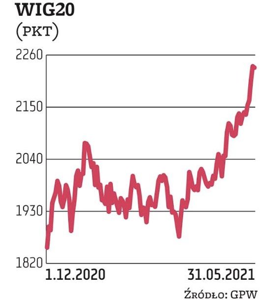 W efekcie po czterech z rzędu wzrostowych sesjach WIG20 zaliczył lekką korektę, kończąc dzień 0,13 proc. pod kreską. Równocześnie minimalnie swoje notowania poprawił WIG. Warto przy tej okazji przypomnieć, że do rekordu wszech czasów brakuje raptem niewiele ponad 2 proc. Warszawska giełda nie mogła jednak liczyć na wsparcie zagranicznych rynków akcji. Na europejskich parkietach więcej do powiedzenia mieli sprzedający, stąd przewaga koloru czerwonego. Warto przy tym mieć na uwadze, że wolne od pracy mieli inwestorzy z Nowego Jorku i Londynu, co nie pozostało bez wpływu na aktywność na pozostałych parkietach. Większego wrażenia nie zrobiły na krajowych inwestorach lepsze od spodziewanych dane o polskim PKB za I kwartał, co oznacza poprawę perspektyw krajowej gospodarki w całym 2021 r. Kilka instytucji już zdecydowało się na podwyżkę prognoz. W Warszawie największe spółki radziły sobie ze zmiennym szczęściem. Dobrą passę kontynuowały notowania PKN Orlen, dzięki czemu są już wyceniane najwyżej od kilkunastu miesięcy. Poranne straty odrobiły największe banki, kończąc sesję na solidnych plusach (PKO BP). Natomiast na celowniku sprzedających znaleźli się przedstawiciele sektora energetycznego PGE i Tauron, którzy mają za sobą bardzo burzliwy miesiąc, obfitujący w duże wahania. Chętnie pozbywano się też papierów CD Projektu, co przełożyło się na największy spadek kursu (prawie 3 proc.) w całym indeksie. Dobrą formę zaprezentowały małe i średnie spółki.