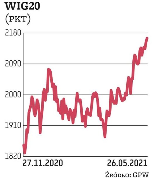 Za nami udany dzień dla inwestorów nie tylko za sprawą ok. 12-proc. zwyżki akcji handlowej spółki. Na zielono na koniec sesji świecił także WIG20, który zyskał ok. 0,5 proc. WIG20 finiszował na poziomie niecałych 2165 pkt, poprawiając tym samym roczne maksima.