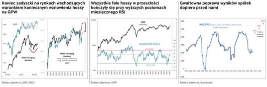 Skoro mowa o relacji między koniunkturą na GPW i na rynkach wschodzących, to warto spojrzeć na bardziej długoterminowy kontekst sytuacji. W drugiej części wykresu pokazujemy, że jeśli bazować na tradycyjnej korelacji łączącej WIG i MSCI EM, rodzimy indeks wydaje się mieć ciągle spore (rekordowe) zaległości.