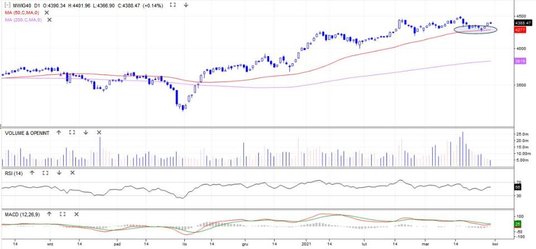 Indeksy za Oceanem odnotowały we wtorek niewielką zniżkę, podczas gdy rentowności obligacji ponownie wzrastają, dla przykładu amerykańskie 10-latki ustanowiły nowe lokalne maksimum. Zjawisko wzrostu rentowności łączone jest z gorszym zachowaniem indeksów akcji, w szczególności ze spadającą względną atrakcyjnością spółek technologicznych. Na rynkach obniża się zmienność wywołana wyprzedażą aktywów funduszu Archegos Capital, a niektóre wyprzedawane spółki takie jak Discovery stabilnie odrabiają straty. Warto odnotować fakt, że niemiecki indeks DAX ma za sobą bardzo udany miesiąc, a wczoraj ustanowił nowe historyczne maksimum powyżej okrągłego poziomu 15 tys. pkt.
