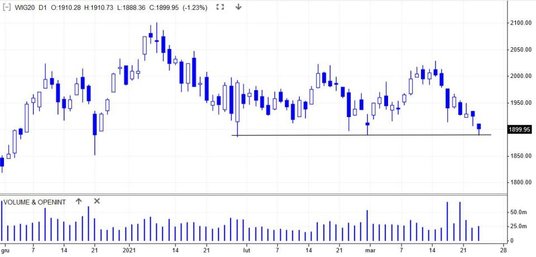 Od początku środowej sesji stroną dominującą na GPW byli sprzedający. Fatalne statystyki dotyczące pandemii i zapowiedziane kolejne obostrzenia wywierały podażową presję na nasz rynek. Ową presję widać było zarówno po słabości WIG20, jak również po słabości złotego (dolar i euro najdroższe od jesieni). Indeks dużych spółek spadał w porywach do 1888 pkt, naruszając wsparcie 1900 pkt, wyznaczone przez dolną granicę kilkutygodniowej konsolidacji. Ciekawostka – minimum wypadło dokładnie w tym samym miejscu, co minimum z sesji 26 lutego i tylko 3 pkt wyżej niż minimum z sesji 28 stycznia. Morał? Mamy w tej okolicy silne wsparcie techniczne, które skutecznie mobilizuje kupujących. Ta mobilizacja była widoczna w końcówce środowej sesji, bowiem WIG20 odbił i wrócił nad 1900 pkt. Pomogło Wall Street. Po godzinie handlu S&P500 zyskiwał 0,6 proc., a Nasdaq oscylował przy poziomie neutralnym. Ponadto większość z europejskiego otoczenie radziła sobie znacznie lepiej niż rodzime indeksy, więc „wypadało" choć trochę skorzystać z tego międzynarodowego optymizmu. Efekt finalny był taki, że WIG20 spadł w środę o 1,2 proc. do 1899,95 pkt. Na dziennej świeci widać mały korpus i dłuższy dolny cień. A skoro taka świeczka wypada na ważnym wsparciu, to niewykluczone, że czwartek przyniesie próbę kontynuacji popołudniowego odbicia. Co do spółek – w gronie blue chips na plusie kończyły PGNiG, Mercator i PZU. Na drugim biegunie były PGE, Allegro, CCC i JSW, tracące odpowiedni 4 proc., 4,05 proc., 4,6 proc. i 8,15 proc.