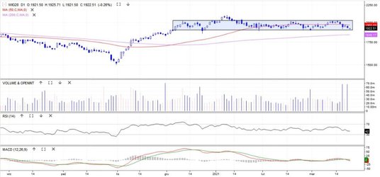 Rynki akcji notowały spadki pod koniec ubiegłego tygodnia, ponieważ wzrost rentowności obligacji osłabił nastroje. W czwartek dziesięciolatki w USA osiągnęły rentowność 1,75%, co jest najwyższym poziomem od 14 miesięcy. Największą zniżkę zanotowały amerykańskie akcje spółek technologicznych. Europejskie indeksy rozpoczęły piątkową sesję na minusie, ale nastroje pogorszyły się, gdy ogłoszono, że Rezerwa Federalna nie będzie przedłużać SLR - programu, który wymaga od banków w USA utrzymywania mniejszych rezerw. Ogłoszenie to odbiło się na nastrojach, ponieważ jest to znak, że Fed zaczyna nieco wycofywać się ze swojej wyjątkowo łagodnej polityki. Na początku tygodnia Fed podtrzymał swoje gołębie stanowisko, utrzymując stopy procentowe i program skupu aktywów bez zmian, zgodnie z prognozami. Prognoza PKB na 2021 r. została podniesiona z 4,2% do 6,5%, ale także prognoza inflacji wzrosła z 1,8% do 2,4%. Wzrost inflacji zwykle idzie w parze z szybszym rozwojem gospodarczym, ale sądząc po prognozach, bank centralny USA nie podniesie stóp co najmniej do 2024 r. Na spotkaniu pojawiły się pogłoski, że wśród decydentów rośnie podział jeśli chodzi o to, kiedy nastąpi wzrost stóp, ale te obawy na razie przygasły. Ogłoszenie w piątek, że SLR wygaśnie pod koniec miesiąca, stworzyło przekonanie, iż Fed uważa, że system bankowy jest na tyle solidny, że może poradzić sobie bez usuwanego wsparcia. Ponieważ gospodarka USA nadal się rozwija, banki muszą mieć pewność, że będą nadal mogły udzielać pożyczek, a co za tym idzie - podtrzymywać ożywienie. Wczoraj ogłoszono, że UE ma zablokować eksport szczepionki AstraZeneca-Oxford do Wielkiej Brytanii. Relacje między stronami nie były ostatnio zbyt dobre. Blok osiągnął gorsze wyniki pod względem wprowadzania szczepień, zaszczepiono ponad 10% populacji regionu, podczas gdy wskaźnik w Wielkiej Brytanii wynosi około 43%. Poinformowano, że Bruksela rozważa surowe środki jako sposób na przyspieszenie własnego programu szczepień, ale Wielka Brytania może podjąć odwet i wstrzymać eksport do Europy kontynentalnej. Bruksela podaje kryzys dostaw szczepionek jako przyczynę ewentualnego zakazu eksportu, ale wygląda na to, że działania te maja podłoże polityczne. Działanie na zasadzie "wet za wet" zaszkodzi obu stronom i prawdopodobnie wywrze presję na giełdy, ponieważ ponowne otwarcie gospodarek zostanie opóźnione.