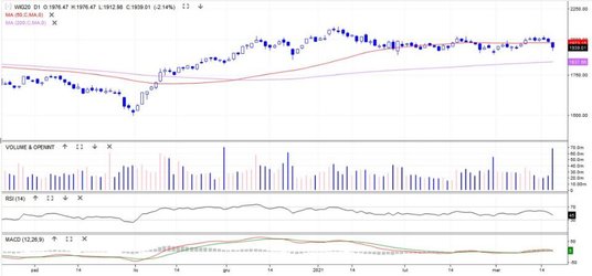 Środa była kolejnym neutralnym dniem na większości giełd europejskich, ale też kolejnym bardzo słabym w Warszawie. Wsparciem dla kontynentu było m.in. zachowanie producentów samochodów, wiedzionych przez Volkswagena i BMW wraz ze wzmocnieniem przekazu o nastawieniu na auta elektryczne, w sprzedaży których w Europie ta pierwsza firma już w ubiegłym roku była liderem. Podczas gdy najsłabszy spośród głównych indeksów IBEX spadł o 0,7%, a DAX wzrósł o 0,3%, WIG20 stracił 2,1%, mWIG40 1,9%, a sWIG80 1,2%. Pretekstem do wyprzedaży w Warszawie było ogłoszenie ogólnopolskiego lockdownu, który zaszkodzi większości spółek tradycyjnej ekonomii, ale nałożyło się ono na bardzo słabą sesję Allegro, które po ogłoszeniu ABB długo pozostawało najgorszą spółką WIG20 (-6,1%), by finalnie zostać wyprzedzone w skali spadków tylko przez LPP (-6,2%).
