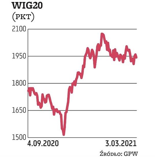 Okrągły poziom, który od kilku tygodni hamuje wzrostowe impulsy, zadziałał i tym razem. Indeks przeszedł w trend boczny. Z jednej strony trzymały go PKO BP i Pekao, a z drugiej ciążyły CD Projekt i Allegro. Takie równoważenie trwało do wczesnego popołudnia. Wówczas pogorszeniu uległy nastroje na innych parkietach Starego Kontynentu, a kontrakty na S&P 500 zaczęły zniżkować, choć rano były 0,5 proc. na plusie. Powód pogorszenia? Analitycy wskazują na wzrost rentowności amerykańskich obligacji dziesięcioletnich. W środowe popołudnie rosły one o ponad 5 proc., ponownie zbliżając się do 1,5 proc. W takim otoczeniu sesja na Wall Street nie mogła zacząć się inaczej, jak od uderzenia niedźwiedzi. Gdy kończyliśmy sesję w Warszawie, S&P 500 tracił 0,3 proc., a Nasdaq 0,9 proc. Efekt finalny dla GPW był taki, że WIG20 spadł o 0,8 proc. do 1943 pkt. Pozostaje więc w konsolidacji 1900/2000 pkt i dopóki nie przebije się przez wsparcie lub opór, dopóty należy zakładać kontynuację średnioterminowego równoważenia sił. W środę najsłabszym segmentem na naszym rynku był WIG.GAMES. Kluczowe znaczenie miała tu słabość CD Projekt. Kurs spadał w porywach do 227 zł, a więc nie gaśnie ryzyko przebicia strefy wsparcia i zejścia do dołków sprzed roku przy 200 zł. W gronie blue chips na większym plusie dzień kończyły tylko banki (PKO BP, Pekao, Santander), ale skala zwyżek była za mała, by zrównoważyć podaż na pozostałych walorach.