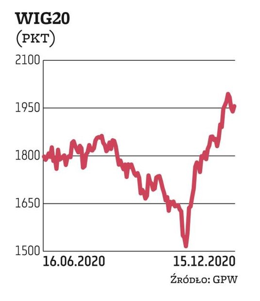 Sam CD Projekt powrócił do zwyżek, dotyczyły one także innych spółek wchodzących w skład WIG20 i dzięki temu indeks zakończył dzień nad kreską. Początek dnia nie był jednak tak oczywisty. W pierwszych minutach handlu niewielką przewagę miały niedźwiedzie. Szybko okazało się jednak, że nie mają zbyt wielu argumentów. Po godzinie od rozpoczęcia notowań WIG20 znalazł się już na wyraźniejszym plusie. W kolejnych fragmentach notowań przewaga kupujących rosła. Straty odrabiał antybohater poniedziałkowej sesji, czyli CD Projekt. Wyraźnie drożały także akcje Allegro. Mocno prezentował się też KGHM. Dzięki takiemu zestawowi WIG20 w połowie notowań był około 1 proc. nad kreską, co stawiało go w gronie najmocniejszych rynków na Starym Kontynencie. Na innych europejskich giełdach też przeważał kolor zielony, ale nie świecił on tak mocno jak w Warszawie. Przed drugą częścią notowań głównym pytaniem było to, w jakich nastrojach dzień rozpoczną inwestorzy w Stanach Zjednoczonych. Z racji pustego kalendarza makroekonomicznego właśnie to wydarzenie miało największych ciężar gatunkowy. Co prawda tuż przed samym rozpoczęciem handlu na Wall Street w poczynania inwestorów w Warszawie wkradł się mały niepokój, a WIG20 oddał część wzrostów, ale ostatecznie Amerykanie dostarczyli argumentów do zakupów akcji. Dzięki temu na ostatniej prostej byki przeprowadziły kolejną szarżę i WIG20 zyskał 0,9 proc.