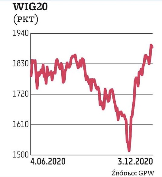 WIG20 zakończył dzień spadkiem o 0,4 proc., podczas gdy w środę zyskał aż 2,4 proc. Przypomnijmy, że indeks dużych spółek dotarł do poziomu 1900 pkt, a jeszcze miesiąc temu bronił poziomu 1500 pkt. Zwyżka jest zatem imponująca, a stoją za nią głównie banki, mocno poturbowane po obniżkach stóp procentowych w Polsce. O takim dorobku w tak krótkim czasie nie mogli marzyć nawet najwięksi optymiści, jednak obecnie WIG20 już już ponad ważnymi oporami w postaci szczytów z wakacji. Poziomy te zostały pokonane właśnie w środę. Dlatego czwartkowe lekkie cofnięcie WIG20 nie powinno budzić obaw. Za zniżkę indeksu dużych spółek odpowiedzialne były głównie banki. Najsłabszymi były Santander oraz Pekao. Co ciekawe, początek sesji był świetny w wykonaniu walorów Orange, które zyskiwały nawet 7 proc. Na koniec dnia akcje Orange były droższe jedynie o 0,8 proc.
