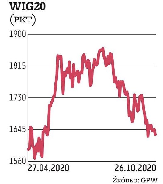 W piątek odbiło się to na m.in. notowaniach restauratorów. Oczywiście spowolnienie gospodarki przełoży się na pogorszenie w wielu innych gałęziach gospodarki. Dlatego na otwarciu poniedziałkowej sesji warszawskie indeksy zaświeciły na czerwono. Pierwsze minuty zapowiadały duże nerwy. Zdecydowana większość dużych spółek zniżkowała po ponad 1 proc., natomiast WIG20 nurkował około 0,7 proc. poniżej zamknięcia z piątku. Krajowi inwestorzy nie mogli szukać wsparcia na innych rynkach w Europie – zniżka DAX-a szybko przekroczyła 2 proc. Kolejne godziny na GPW mijały w podobnej atmosferze, jednak poszczególne duże spółki zaczynały iść w swoją stronę. Warto przede wszystkim wyróżnić niedawnego debiutanta, czyli Allegro, który wraz z CD Projektem powstrzymywał WIG20 przed zejściem poniżej minimów z ostatnich dni. Do tego grona dołączyły Alior Bank oraz PGE. W przypadku Aliora pojawiły się pogłoski na temat ewentualnej zmiany właścicielskiej, które wywołały mocne wahania notowań. Tabelę zamykały z kolei firmy najmocniej narażone na skutki obostrzeń i nastroje konsumentów, czyli LPP i CCC. Zniżki sięgnęły 5–6 proc. Jeszcze słabsze było jednak JSW ze spadkiem o 7 proc.