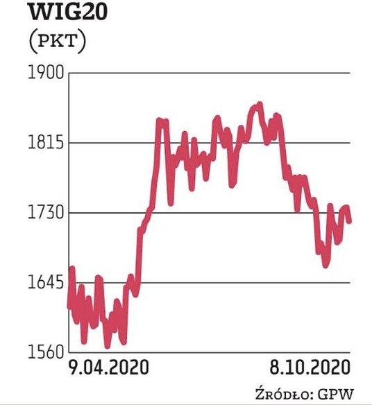 Ten tydzień upływa na razie pod znakiem słabości, sugerując, że ów powrót był klasycznym, fałszywym sygnałem. W czwartek WIG20 spadł bowiem o 1 proc., do 17 19,9 pkt, a na wykresie pojawiła się czarna świeca z długim korpusem (marubozu). Taki układ przy ważnym oporze ma negatywną wymowę i zwiększa ryzyko, że wrześniowe wybicie ze wspomnianej konsolidacji było jednak zmianą układu sił na korzyść strony podażowej. To ryzyko zwiększa też fakt, że rodzimy segment dużych spółek był w czwartek relatywnie słabszy od swoich odpowiedników zagranicznych. Gdy popołudniu WIG20 mocno nurkował, DAX rósł o 1,1 proc., CAC40 – o 0,9 proc., a S&P 500 – o 0,7 proc. Biorąc pod uwagę fakt, że na szerokim rynku w gronie najsilniejszych spółek i najbardziej płynnych był Biomed Lublin, czyli gwiazda „covidowej hossy", można odnieść wrażenie, że kapitał uciekał z naszego rynku z powodu rosnących statystyk zakażeń Covid-19. Ponadto ogłoszono, że od soboty cały kraj zostanie objęty strefą żółtą, co bez wątpienia zwiększa obawy przed kolejnymi ograniczeniami życia społeczno-gospodarczego, które bezpośrednio będą się przekładać na wyniki spółek. W czwartek indeks sWIG80 stracił mniej niż WIG20, a NCIndex zanotował szóstą wzrostową sesję z rzędu. W gronie spółek o największych obrotach były dwie z małego parkietu – Inno-Gene i Boruta Zachem.