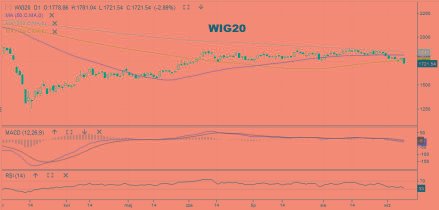 To wszystko rykoszetem odbija się na GPW. WIG20 na godziną przed końcem sesji spadał o 2,8 proc. do 1722 pkt. To najniższy poziom od początku czerwca. Notowania są poniżej wstęgi średnich, co stanowi techniczne "zaproszenie" do głębszej korekty.