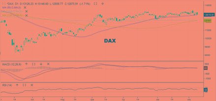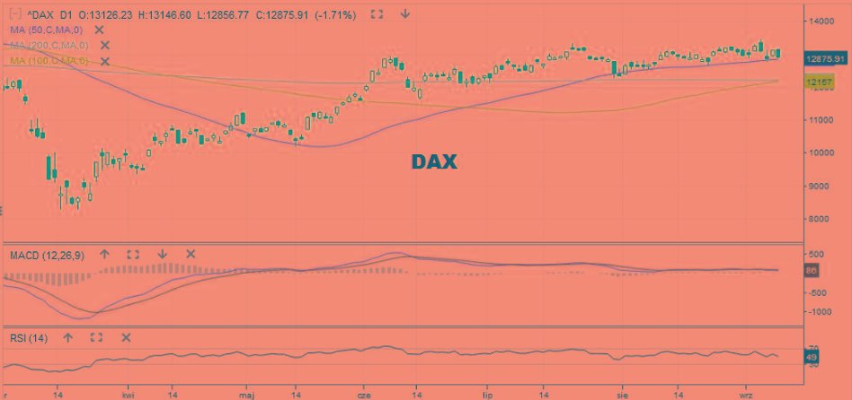 Jak to w systemie naczyń połączonych bywa – za Wall Street podążają dziś rynki europejskie. DAX tracił po południu 1,7 proc., korygując kurs do 12 874 pkt, gdzie znajduje się 50-sesyjna średnia. Jak widać – ta ostatnia nabiera coraz większego znaczenia z perspektywy AT.