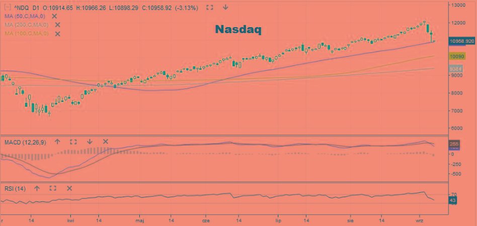 Co istotne – ceny czarnego złota są ostatnio dodatnio skorelowane z rynkiem amerykańskim. Gdy we wtorek rano przecena ropy nabierała rozpędu, w ślad za nią poszły kontrakty na indeksy S&P500 i Nasdaq Composite. Po otwarciu handlu na Wall Street, pierwszy spadał o 2,1 proc. do 3354 pkt, a drugi o 3,3 proc. do 10 932 pkt. S&P500 spada trzecią sesję z rzędu, ale wciąż trzyma się nad wstęgą średnich kroczących z 50, 100 i 200 sesji. Nasdaq natomiast testuje właśnie dzienną 50-tkę, więc z jednej strony jest to techniczny pretekst do odbicia, a z drugiej – jej pokonanie może sprowokować dalszą wyprzedaż. W tym kontekście dzisiejsza sesja za oceanem może być bardzo istotna dla dalszego układu sił na amerykańskim rynku akcji. - Interesująca była szczególnie sesja piątkowa. Wtedy to NASDAQ tracił podczas sesji kolejne pięć procent. W tym momencie włączył się większy popyt i straty zostały zredukowane do minus 1,8 proc. Zadziałały w piątek dwa mechanizmy. Po pierwsze od wielu lat utrwalony odruch, który zmusza do kupowania przecen. Po drugie to, że NASDAQ tracąc w sumie podczas dwóch sesji blisko 10 proc. wypełnił zakres spadku, który Wall Street uznaje za normalną korektę w trendzie wzrostowym. Dzisiaj zobaczymy, czy rzeczywiście korekta ma się ku końcowi – komentował ostatnie wydarzenia Piotr Kuczyński, znany analityk rynków finansowych.