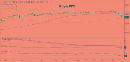 Ropa naftowa tanieje dziś piątą sesję z rzędu. Na koniec sierpnia za baryłkę WTI płacono 42,6 USD, a dziś po południu kurs sięgał 36,8 USD. - Pod presją pozostają notowania ropy, która w przypadku odmiany WTI znajduje się poniżej 39 USD za baryłkę po tym jak Arabia Saudyjska zasygnalizowała problem ze słabnącym popytem na głównych rynkach – tłumaczył w porannym komentarzu Rafał Sadoch, analityk BM mBanku. Warto zwrócić uwagę na wykres surowca. Po wyraźnym zmniejszeniu dynamiki trendu i wypłaszczeniu średnich z 50 i 200 sesji doszło do wyjścia dołem z wąskiej konsolidacji. To daje pretekst do przynajmniej krótkoterminowej korekty. Cena zbliża się do 100-sesyjnej średniej, zlokalizowanej obecnie przy 35,8 USD.