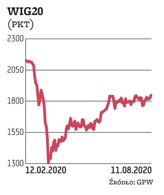 Notowania znów próbują wydostać się górą z trwającej od czerwca konsolidacji, ale od góry silnym oporem jest średnia krocząca z 200 sesji (1882 pkt). Za wtorkowy wzrost indeksu odpowiadały przede wszystkim banki. To ten sektor był najmocniejszy na całym rynku. Reprezentujący go WIG zyskał aż 4,7 proc., a przypomnijmy, że jest to segment, który licząc od marcowego dołka, jest relatywnie najsłabszy na całym szerokim rynku. W portfelu blue chips liderami sesyjnych zwyżek byli: Alior (8,5 proc.), mBank (6,7 proc.) oraz PKO BP (5,7 proc.). Z dużych spółek pod kreską kończyły tylko Play, KGHM, Dino i CD Projekt. Na wykresach ostatniej trójki trwa korekta zwyżek.