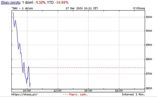 Odbijać próbuje dzisiaj nie tylko warszawski rynek, ale i inne europejskie parkiety. Liderem wzrostów w pierwszych minutach handlu był hiszpański Ibex35, który rośnie prawie 6 proc. Niemiecki DAX jest 4,5 proc. na plusie. Słabo za to nadal wygląda sytuacja we Francji. Tam CAC40 spada prawie 2 proc. Warto jednak zauważyć, że Francja wprowadza coraz to bardziej radykalne działania w walce z koronawirusem. Zakazano m.in. spotkań rodzinnych i towarzyskich.