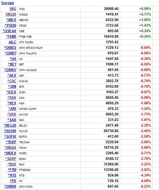 Wystartował rynek amerykański. Powiało optymizmem. Kilka minut po otwarciu indeksy zyskiwały około 3 proc. Jest więc szansa na mocne zakończenie notowań w Europie. WIG20 rośnie o prawie 6 proc.