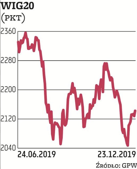WIG20 zaczął dzień w okolicach zamknięcia z zeszłego tygodnia, tj. przy 2128 pkt. Przez kilka kolejnych godzin działo się niewiele. Od południa indeks dużych spółek zaczął jednak zyskiwać. Z rana zyskiwały spółki energetyczne, jednak szybko oddały skromny dorobek. Na czoło wysunął się z kolei mBank, który pod koniec dnia zyskiwał blisko 4 proc. Za nim plasował się CD Projekt. Tabelę zamykały telekomy – Play i Orange. Wszystko to działo się jednak przy bardzo niskich obrotach, zbliżających się pod koniec dnia do 300 mln zł. Ostatecznie małą płynność wykorzystał popyt, a WIG20 zakończył dzień zwyżką o 0,68 proc., tj. na poziomie ponad 2142 pkt. Na tle innych europejskich indeksów był to całkiem niezły wynik, jednak niewiele znaczący. WIG20 mijający rok jako jeden z nielicznych w Europie kończy pod kreską – słabiej zaprezentował się tylko ukraiński UX, który skupia zaledwie kilka spółek. W czołówce jest m.in. rosyjski RTS, który w 12 miesięcy zyskał około 44 proc., a jednymi z najlepszych są też spółki niemieckie.