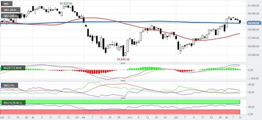 Środowa sesja przyniosła kontynuację osłabienia notowań na krajowym rynku. Kurs FW20 jest w fazie ruchu powrotnego do pokonanego niedawno wrześniowego szczytu w pobliżu 2217 pkt. Krótkie korpusy ostatnich świec podkreślają dość umiarkowany impet spadkowy nadający w większej mierze korekcyjny charakter ostatniej zniżce, niż trwalsze odwrócenie tendencji. Wskaźniki AT w interwale dziennym podążają za kursem, ryzyko sygnału sprzedaży rośnie na MACD. Na wykresie 60-min kurs opiera się na wsparciu pokonanego szczytu sprzed 2 tygodni – 2239 pkt. Wskaźniki AT w tym interwale jeszcze podtrzymują spadkowe sygnały, jednakże zarówno MACD jak i RSI podejmują próbę zwrotu w górę. RSI jest w kanale spadkowym i dopiero wybicie ponad górne ograniczenie będzie bardziej doniosłym wskazaniem. Na rynkach zagranicznych wczorajsza sesja przyniosła niewielkie zmiany głównych indeksów rynków amerykańskich oraz zachodnioeuropejskich, aczkolwiek indeks Dow Jones zdołał wejść na nowe historyczne maksimum. Jest jednak obserwowane obniżenie wzrostowego impetu, niezbyt pozytywne doniesienia z Państwa Środka oraz mglisty przebieg negocjacji handlowych USA - Chiny studzą zapał kupujących. Zmiana notowań kontraktów terminowych na DAX i SP500 od wczorajszego popołudnia implikują neutralny początek sesji dla FW20. W dzisiejszy kalendarium zwracamy uwagę na poranne publikacje wyników finansowych wybranych spółek indeksu bazowego. PZU zaraportowały wynik powyżej konsensu rynkowego, PGNIG trafił w prognozy. W zakresie danych makro zwracamy uwagę wstępny odczyt krajowego PKB oraz po rewizji w strefie euro. Wg. wstępnych szacunków wzrost gospodarczy dla Niemiec wyniósł 0,1% k/k wobec prognoz spadku o 0,1%. Oprócz danych makro jest zaplanowana seria wystąpień regionalnych szefów FED.