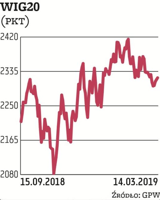 Od pięciu dni indeks blue chips waha się w dość wąskim zakresie punktowym. Po dotarciu w ostatni piątek w okolice 2290 pkt, gdzie wypadał minimalny teoretyczny zasięg korekty po utworzeniu formacji podwójnego szczytu, WIG20 krok po kroku oddalał się od perspektywy dalszych spadków. Przez cztery ostatnie dni w cenach zamknięcia udawało mu się bronić poziomu 2300 pkt, a po środowej sesji było dość jasne, że kolejny celem kupujących stanie się poziom 2320 pkt, czyli miejsce, w których ukształtował się m.in. lutowy dołek. I rzeczywiście, w czwartek z rana popyt zaatakował, naruszając poziom 2320 pkt. Kupującym zabrakło jednak sił na dłużej. Jeszcze przed południem WIG20 oddał cały dorobek, a nawet spadł poniżej poziomu zamknięcia ze środy. W kolejnych godzinach balansował w okolicach zera, a ostatecznie sesję zakończył zwyżką o 0,19 proc., czyli dokładnie na 2319 pkt. Zatem sytuacja techniczna właściwie się nie zmieniła. WIG20 nie zdołał przebić pierwszego oporu, który pojawił się na drodze. Jeśli w piątek znów ta bariera okaże się zbyt trudna do sforsowania, to trzeba będzie się liczyć z kolejną falą spadkową. Wiele oczywiście zależeć będzie od tego, jak zakończy się czwartkowa sesja w USA. W momencie zamknięcia tego wydania S&P 500 rósł o 0,08 proc. A zatem amerykański indeks wciąż walczy o powrót do hossy, ale równie dobrze na wykresie może rysować się formacja podwójnego szczytu. ¶