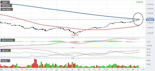 Pozytywnie wciąż zaskakują małe spółki. Indeks sWIG80 zaczął dzisiejszą sesję od wzrostu do nowego szczytu trendu 11 832 pkt. Mniej więcej na tym poziome znajduje się 200-sesyjna średnia krocząca. Można więc powiedzieć, że maluchy zaczęły walkę o bycze przesilenie. W tym segmencie najlepiej radziły sobie rano BSC Drukarnia Opakować, Toya i Mirbud.