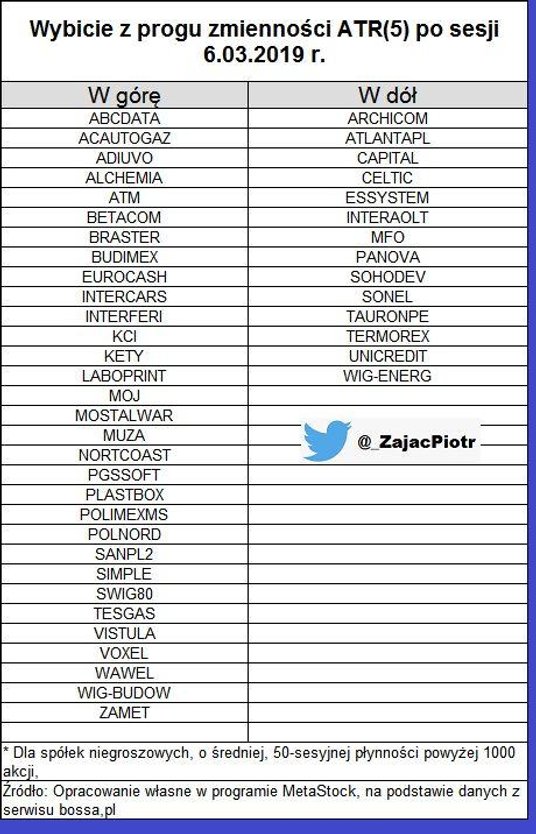 Środa nic nie zmieniła w technicznym obrazie krajowego rynku, który dalej tkwi w zakresie wahań z ostatnich dwóch tygodni. Wśród komponentów kolejny dzień pozytywnie wyróżniał się Eurocash (+5,7%) i obecnie to najlepsza spółka w WIG20 w tym roku (+30% YTD). Chęć to wzrostów widać też w KGHM (+2,3%, +17% YTD). Z kolei wśród hamulcowych znalazła się znowu energetyka. Po bardzo udanym 4Q'18, w lutym sektor złapał zadyszkę, a przecena przyśpieszyła po słabych wynikach PGE/ENG. W tym kontekście nastroju nie poprawi również wczorajszy odczyt ENA. Na rynkach zagranicznych S&P500, po konsolidacji w rejonie 2800 pkt, wybił dołem małą formację „M", co zapowiada dalsze spadki. Dolar bez większych zmian, choć od marca widzimy umocnienie amerykańskiej waluty, które negatywnie wpływa na postrzeganie rynków wschodzących. W kalendarium makro dziś EBC z nowymi projekcjami i konferencją (14:30 CEST). Oczekuje się kolejnego obniżenia prognoz (już 4 !). W grudniu'18 PKB na 2019 rok zostało ścięte z 1,8 na 1,7%. Obecny konsensus Bloomberg zakłada wzrost zaledwie o 1,4% r/r (rok temu EBC zakładał +1,9%).
