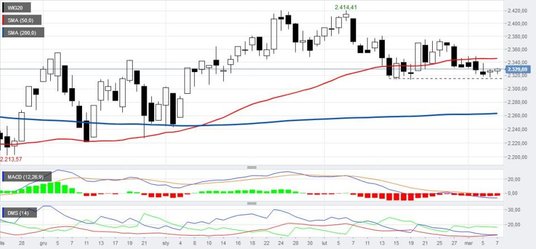 Początek miesiąca na GPW upływa pod znakiem obrony lutowego dołka (2313 pkt) przez indeks WIG20. Świadczą o tym m. in. ostatnie dzienne świece na wykresie, które mają niewielkie korpusy i położone są na zbliżonym pułapie. Byki nie chcą dopuścić do pogłębienia dołka, bo byłby to techniczny sygnał sprzedaży, przynajmniej w ujęciu krótkoterminowym. Zadanie jest więc proste - trzeba utrzymać notowania powyżej wskazanego pułapu. Warunki go jednak nie ułatwiaj. Z jednej strony dobre wieści dotyczące relacji USA i Chin, a z drugiej pogarszającej się prognozy dla strefy euro (patrz wczorajsze projekcie OECD). Inwestorzy będą więc dziś wyjątkowo uważnie przygląda się kalendarium, bo w nim bowiem m. in. PKB strefy euro, decyzja EBC dot. stóp oraz projekcje makro. Ważne będzie także otwarcie handlu na Wall Street. Dla WIG20 kluczowe na dziś pozostaje 2313 pkt. Rano indeks oscylował przy 2328 pkt, więc do wsparcia "rzut beretem". A jak sytuację na rynku oceniają analitycy?