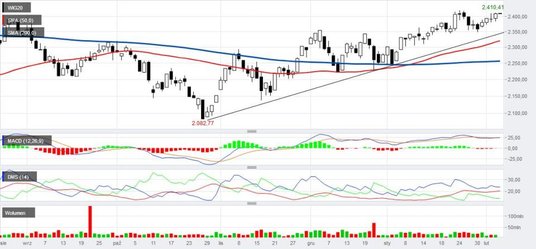 Wall Street we wtorek mogła albo kontynuować nieco bezrozumną (według mnie) hossę albo skorzystać z publikowanego po sesji poniedziałkowej raportu kwartalnego Alphabet (Google), który rozczarował. Pomagać Amerykanom mogło bardzo „bycze" zachowanie giełd europejskich. Publikacja ostatecznego (dla stycznia) indeksu PMI dla sektora usług niczego nie zmieniła. Odnotujmy jedynie, że indeks wyniósł ostatecznie tak jak oczekiwano 54,2 pkt. Bardziej istotny był też w poniedziałek publikowany indeks ISM dla sektora usług. On wyniósł 56,7 pkt. (oczekiwano 57 pkt.) Wall Street nie przejęła się (niewielkim) spadkiem ceny Google. Od początku sesji indeksy kontynuowały zwyżki z poniedziałku. Po 90 minutach rozpoczęła się realizacja zysków, która doprowadziła indeks S&P 500 do poziomu neutralnego. Obóz „byków" jednak się nie poddał i indeksy znowu ruszyły na północ. Indeks S&P 500 zyskał 0,47%, a NASDAQ 0,74%. Zachowanie Wall Street jest coraz bardziej kuriozalne. Chyba jedynie czekanie na umowę USA – Chiny może być wytłumaczeniem takich nastrojów. Dzisiaj o 3. w nocy naszego czasu, prezydent Trump wygłosił doroczne orędzie o stanie państwa. Oczywiście wcześniej nie dało się przewidzieć, co się w nim znajdzie, więc Wall Street działała niejako „w ciemno", ale mówiło się, że wyciągnie rękę do Demokratów. Okazało się, że przemówienie było bardzo konfrontacyjne, mur na granicy ma być budowany, ale szczegóły na temat tego, w jaki sposób zostanie sfinansowany, nie pojawiły się. Jeśli z tego powodu indeksy wcześniej rosły to dzisiaj powinien pojawić się niepokój. GPW rozpoczęła sesję wtorkową od wzrostu indeksów, ale u nas nie było widać entuzjazmu, którym emanowały inne giełdy europejskie. Tam indeksy po godzinie zyskiwały blisko jeden procent, a u nas WIG20 utrzymywał się tuż nad kreską. Jak tylko na innych giełdach indeksy na chwilę wyhamowały (po kilkunastu minutach notowały nowe szczyty) to u nas WIG20 zabarwił się na czerwono i na długo utknął w okolicach poziomu neutralnego. Dopiero ostatnia godzina sesji, podczas której jak na drożdżach rosły indeksy na innych giełdach europejskich oraz na Wall Street zmusiły popyt do ataku, dzięki czemu WIG20 zyskał 0,79% wychodząc znowu ponad opór w obszarze 2.380-2.390 pkt. Problem w tym, że bardzo mały obrót nie potwierdził tego sygnału. Można dzisiaj powiedzieć tylko to, że jeśli mały obrót się utrzyma to zakończenie sesji może być dowolne. Tylko duży wzrost obrotu daje szansę na prawdziwe wyrwanie się WIG20 ze strefy oporu.