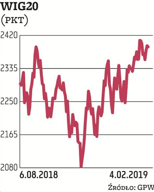 W Warszawie spółki z WIG20 radziły sobie ze zmiennym szczęściem. Zainteresowaniem kupujących cieszyły się przede wszystkim walory spółek energetycznych. Zwyżkom w tym sektorze przewodziła PGE, której kurs wspiął się na najwyższy poziom od ponad roku. Kupujący pojawili się też na papierach PGNiG, które przez moment były wyceniane najwyżej w historii notowań spółki na GPW. Mieszane nastroje panowały w sektorze bankowym. Popyt uaktywnił się na walorach Pekao, równocześnie chętnie pozbywano się akcji PKO BP, mBanku i Santandera. Korekcie poddały się też notowania spółek rafineryjnych PKN Orlen i Lotosu oraz KGHM, któremu ciążyły spadki cen miedzi na światowych rynkach.