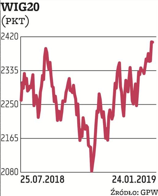 Mocna zniżka petrochemicznej firmy po południu sprowadziła WIG20 poniżej poziomu zamknięcia ze środy. Niemal przez cały dzień na czerwono świeciły również walory CD Projektu – gwiazdy poprzedniej sesji. Inwestorzy najwyraźniej realizowali szybkie zyski. Przewaga kupujących uwidoczniła się jednak na walorach innych dużych przedsiębiorstw. W czwartek przez cały dzień mocne były banki oraz spółki energetyczne. Na czoło pod koniec dnia wysunęło się jednak odzieżowe LPP. Ostatecznie WIG20 zakończył dzień niemal w tym samym miejscu co dzień wcześniej, czyli w okolicach 2406 pkt. Po bardzo udanej sesji w środę, kiedy WIG20 wzrósł o ponad 2 proc., utrzymanie poziomów kolejnego dnia uwiarygodniło siły popytu. Indeks blue chips od początku roku nie zwalnia tempa i znajduje się teraz na najwyższych poziomach od lutego ub.r. Od stycznia urósł już o 5,7 proc.