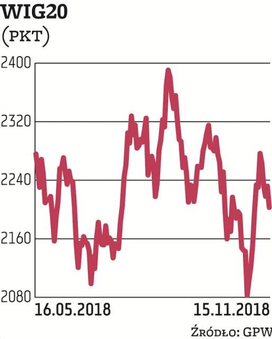 Do tego doszły dymisje dwóch ministrów w rządzie Theresy May, a analitycy zaczęli mówić o politycznym chaosie. Dla rynków to nic dobrego, co było widać po zachowaniu WIG20. Indeks zaczął wprawdzie sesję od zwyżki do dziennego maksimum 2254 pkt, ale później było już tylko gorzej. Byki długo walczyły o utrzymanie indeksu przy poziomie środowego zamknięcia, ale skapitulowały w końcówce sesji, gdy amerykańskie indeksy zaczęły wyraźnie nurkować. S&P 500 i Nasdaq Composite traciły po godzinie handlu odpowiednio 0,9 i 0,6 proc., a WIG20 przed fixingiem wyznaczył dzienne minimum 2206 pkt. Pod znakiem zapytania stanęło utrzymanie notowań powyżej wsparcia 2200 pkt, które jest bardzo istotne, jeśli myślimy o zbudowaniu trwalszego układu wzrostowego. Fakt, że nastroje na GPW determinowały przede wszystkim wydarzenia zagraniczne, widać było po zachowaniu indeksów mWIG40 i sWIG80. Pod koniec sesji pierwszy zyskiwał symboliczne 0,1 proc., a drugi tracił 0,05 proc. Obroty na naszym rynku sięgały natomiast 685 mln zł.