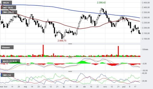 Nie ma co owijać w bawełnę. Środowa sesja na warszawskim parkiecie była po prostu nudna. Zakres wahań na WIG20 wyniósł zaledwie 18 pkt i cały dzień był jednym wielkim staraniem o to, by utrzymać notowania nad dołkiem z 11 października, czyli 2144 pkt. Bykom nie pomagały w tym dwie kwestie. Pierwsza to poranne odczyty PMI dla usług i przemysłu Niemiec i strefy euro. Wszystkie dane wypadły gorzej od oczekiwań. Druga to otwarcie sesji na Wall Street. Po godzinie handlu S&P500 spadał o 0,6 proc. do 2724 pkt, i to pomimo lepszych od prognozy odczytów PMI z amerykańskiej gospodarki. Wygląda na to, że za oceanem dobre dane to złe dane. Dlaczego? Być może dlatego, że wspierają jastrzębią politykę Fedu, co w konsekwencji zwiększa ryzyko większych napięć na linii Trump – Powell. Czego jak czego, ale konfliktów ekonomiczno-politycznych w tym roku rynkom naprawdę nie brakuje. Od technicznej strony warto dodać, że S&P500 spadł ostatnio poniżej 200-sesyjnej średniej kroczącej, co jest niepokojącym sygnałem przesilenia. Wypadkową tych wszystkich czynników jest fakt, że WIG20 zakończył środową sesję spadkiem o 0,16 proc. do poziomu 2144 pkt. Zatrzymał się więc dokładnie na wspomnianym wsparciu. Można to traktować jako dobry prognostyk przed czwartkową sesją, choć kluczowe będzie to jak zamknie się sesja na Wall Street.