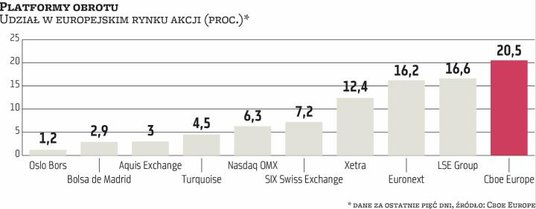 Cboe Europe, tzw. alternatywna platforma obrotu (w skrócie MTF), która jest częścią grupy Cboe Global Markets (razem m.in. ze słynną giełdą Chicago Board Options Exchange), zaczyna zaznaczać swoją obecność w naszym kraju. W ubiegłym tygodniu jej przedstawiciele odbyli w Warszawie serię spotkań z brokerami, zachęcając ich do przeniesienia obrotu z GPW na ich platformę. Lokalni brokerzy do oferty Cboe Europe na razie podchodzą z dystansem. Nie oznacza to jednak, że inicjatywa nie ma szans powodzenia.