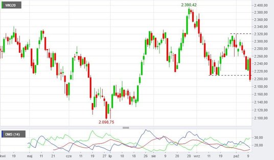 Środowa sesja na GPW zaczęła się neutralnie, ale WIG20 nie zdołał długo utrzymać się przy poziomie poprzedniego zamknięcia. Już po 30 minutach zaczął spadać i taki kierunek utrzymał do końca sesji. Z samego rana nie pomagało mu to, że S&P500 nie zdołał we wtorek wrócić nad 2900 pkt. Ponadto inwestorzy cały czas obawiają się o konflikt na linii Włochy-Bruksela. W środę rano usłyszeliśmy od wicepremiera Salviniego, że rząd może zachęcać obywateli do kupna obligacji. – Wygląda na to, że do końca sporu jest jeszcze daleka droga – skomentował to krótko Konrad Białas, główny ekonomista TMS Brokers. W końcówce sesji WIG20 dostał jeszcze „strzał" zza oceanu. Indeksy S&P500 i Nasdaq rozpoczęły handel od spadku i po niecałych dwóch godzinach traciły odpowiednio 1 proc. i 1,5 proc. Korekta na Wall Street się pogłębia, co sugeruje, że dotychczasowa bezpieczna przystań też zaczyna szwankować. Oczywiście skala wyprzedaży za oceanem jest wciąż niewielka, ale wystarczy, by popsuć i tak już zepsute nastroje w Europie. Efekt końcowy był taki, że WIG20 spadł w środę o 2,4 proc. do 2197 pkt. Tak nisko jego notowania nie były od końca lipca. Indeks przełamał lokalne wsparcie na 2210 pkt, co oznacza techniczne zaproszenie do pogłębienia przeceny nawet w rejon 2150 pkt. Oporem pozostaje lokalny szczyt przy 2320 pkt. Warto dodać, że największym ciężarem w portfelu blue chips były: jego największy udziałowiec PKO BP (-4,1 proc.) i do niedawna jego najsilniejsza gwiazda CD Projekt (-5,2 proc.). Na plusie pod koniec sesji trzymały się tylko JSW, Alior Bank i Cyfrowy Polsat.