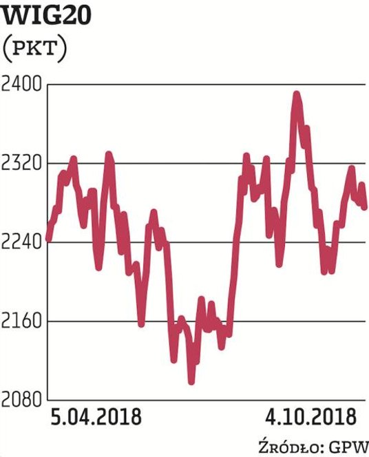 Początek czwartkowej sesji przyniósł dość gwałtowny spadek WIG20, który jeszcze w pierwszej godzinie handlu znalazł się na poziomie 2270 pkt. W kolejnych godzinach jednak indeks blue chips stopniowo wspinał się coraz wyżej, a na godzinę przed końcem sesji udało się nawet dojść w pobliże zamknięcia z poprzedniego dnia. Ten punkt, czyli okolice okrągłego poziomu 2300 pkt, sprowokował jednak sprzedających. W efekcie WIG20 zanurkował do dziennych minimów. Sesja ostatecznie zakończyła się spadkiem o blisko 1 proc. Do 2300 pkt brakuje prawie 25 pkt. W gronie dużych spółek największą, prawie 7-proc. zniżkę zanotowały walory CD Projektu, choć tego dnia ze spółki nie wypłynął żaden oficjalny komunikat. Mocno zniżkowały również walory JSW, a także Tauronu, który jako jeden z nielicznych w gronie dużych firm zaczął dzień od wzrostów. Przez dużą część dnia mogło się wydawać, że spółki z branży energetycznej kolejny dzień będą mocne, jednak ostatecznie na koniec sesji z tej grupy tylko PGNiG kończyło na zielono. Poza nim w WIG20 wzrosły kursy Cyfrowego Polsatu, Lotosu, PKN Orlen i CCC.