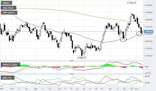Początek tygodnia na GPW nie należy do udanych. Po ostatniej wyprzedaży nie widać bowiem zakupowego entuzjazmu. WIG20 rósł po południu o 0,35 proc. do 2265 pkt, co zbiegło się na wykresie z testem 50-sesyjnej średniej kroczącej. Jej ewentualna obrona będzie mieć pozytywną, techniczną wymowę, ale trzeba przyznać, że atmosfera na rynku do najlepszych nie należy.