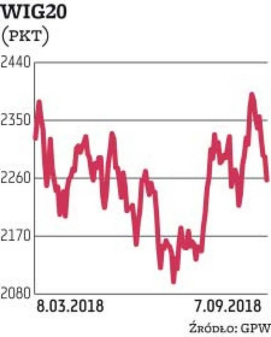 WIG20 stracił 1,56 proc. i zakończył sesję na pułapie 2257,3 pkt. Dla indeksu blue chips oznacza to czwartą z kolei spadkową sesję, natomiast skala zniżki w ostatnim dniu tygodnia była największa. WIG20 w mijającym tygodniu rósł tylko w poniedziałek. Tym samym na wykresie tygodniowym wyrysowała się długa czarna świeca z równie okazałym górnym cieniem. Spadki z ostatnich dni strawiły już niemal w całości zwyżkę z drugiej połowy sierpnia i wygląda na to, że mocniejszego wsparcia należy szukać dopiero w okolicach 2200 pkt.
