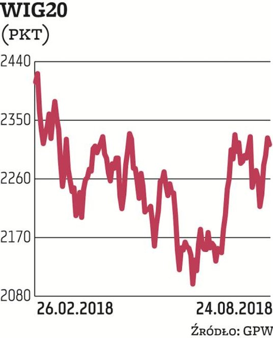 W ostatnich dniach WIG20 pokazał siłę. Indeks dużych spółek mocno zwyżkował niemal przez cały tydzień, a łącznie w tym czasie zyskał około 100 pkt. Wyraźnie widać, że strona popytowa chce kontynuować zwyżkę z połowy lipca. Główną przeszkodą jest jednak poziom w okolicach 2330 pkt. Już po raz trzeci w ostatnich tygodniach WIG20 się od niego odbił. Przypomnijmy, że ten poziom postawił również granicę na drodze zwyżek w kwietniu i maju. Tak było i w czwartek, kiedy indeks blue chips po dotarciu do 2332 pkt skończył dzień około 10 pkt niżej. W piątek ten pułap stał się górną granicą możliwości kupujących. Ostatecznie dzień zakończył się spadkiem o 0,4 proc., czyli na poziomie 2312,7 pkt. Sesja nie przyniosła rozstrzygnięcia, jeśli chodzi o kierunek WIG20 na następne dni. Bliskość mocnego oporu była dobrą okazją dla niedźwiedzi, by znów zawrócić kierunek WIG20. Ciężko się zgodzić z tym, że podaż wykorzystała ten moment, bowiem w skali całego tygodnia piątkowa zniżka nie robi większego wrażenia. Trudno też wyobrazić sobie, że po tygodniach zmagań i ponownym dojściu do ważnego poziomu popyt nie znajdzie sił na walkę o jego przebicie. Akcje blue chips budzą coraz większe zainteresowanie, co widać po stopniowo rosnących obrotach. W piątek dużym ciężarem było kilka przedsiębiorstw z sektora energetycznego. O 2,7 proc. pod koniec sesji zniżkowało PGNiG. O blisko ponad 1,5 proc. spadały zaś akcje JSW i BZ WBK. Na zielono dzień kończyły PKN Orlen, CCC, KGHM i Energa. mWIG40 rósł na koniec dnia o 0,22 proc., a sWIG80 spadał o 0,14 proc.