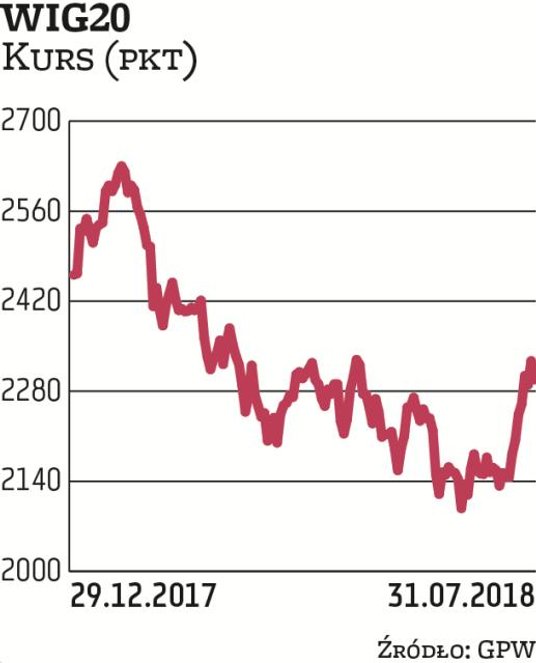 W pierwszej części notowań WIG20 tracił około 0,5 proc. Im bliżej startu sesji na Wall Street, tym mniejsze były te straty. Wydawało się nawet, że w drugiej części dnia giełdowego na parkiecie zagości kolor zielony. Nic takiego się jednak nie stało. WIG20 nie tylko nie wyszedł nad kreskę, ale jeszcze na ostatniej prostej znowu przypomniały o sobie niedźwiedzie. Było to o tyle zaskakujące, że Amerykanie rozpoczęli dzień od zwyżek. Chęć realizacji zysków na GPW wzięła jednak górę. Ostatecznie WIG20 stracił 1,1 proc. i tylko rzutem na taśmę udało mu się obronić psychologiczny poziom 2300 pkt.