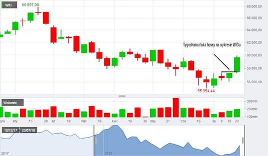 Zeszłotygodniowe wydarzenia zarówno na GPW jak i Wall Street zapadną na długo w pamięci inwestorów. Z jednej strony pojawiła się bardzo silna aprecjacja warszawskich indeksów, której skala nawiązuje do początków hossy z grudnia 2016.r. Z drugiej zaś na wykresie WIGu uwidoczniła się tygodniowa luka hossy, która posiada właściwości magnetyczne i zgodnie z obserwacjami na przestrzeni ostatnich kilkunastu lat istnieje ponad 90% prawdopodobieństwo jest domknięcia. Na uwagę zasługuje fakt, iż zarówno WIG jak i WIG20 wyhamowały lipcową zwyżkę na wysokości tygodniowych EMA, co w połączeniu z korekcyjnym charakterem ostatniej aprecjacji generuje ryzyko spadków i zejścia w stronę minimów powstałych w ubiegły poniedziałek. Nie jest powiedziane, że miałoby to nastąpić już teraz, gdyż byki zapewne będą chciały ponowić atak ostatnich maksimów, jednakże zgodnie z teorią magnetyczności luk początek spadkowej fali powinien wypaść nie później niż w trzecim tygodniu sierpnia.