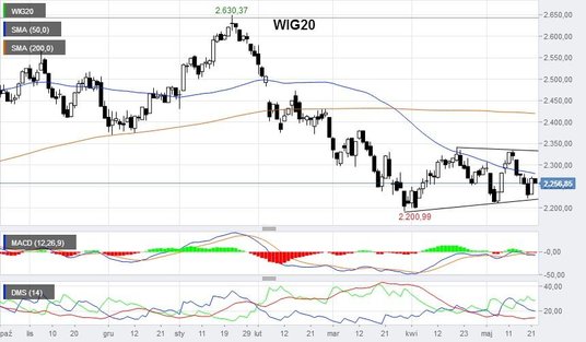 Dzisiejsze kalendarium makroekonomiczne jest puste, więc trudno oczekiwać impulsów z tej strony. Istotne może być zachowanie indeksów zagranicznych, w tym niemieckiego DAXa, który wraca po dziennej absencji spowodowanej świątecznym dniem wolnym. Warto też zerkać na początek handlu w USA. Zwłaszcza, że S&P500 jest bliski wyjścia na nowe lokalne szczyty. Potrzeba mu tylko pokonania oporu 2742 pkt.