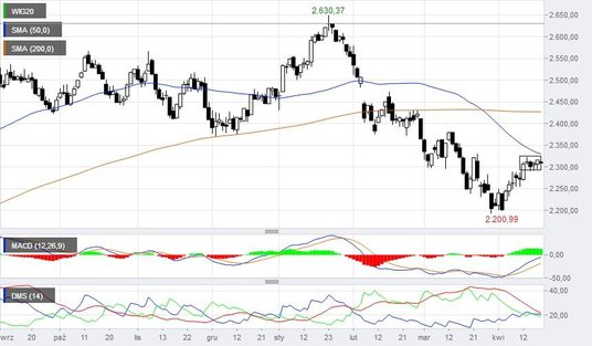 O 10.00 poznamy dane o polskiej produkcji przemysłowej w marcu. Odczyt ten to jedna z najważniejszych dziś publikacji. W momencie, gdy kwestie geopolityczne, przynajmniej na razie, trochę ucichły może to mieć wpływ na kierunek zmian głównego indeksu. WIG20 od tygodnia nie wychodzi poza 30-pkt zakres wahań. Indeks zamknął się w konsolidacji między 2320 i 2290 pkt. Przebicie którego z tych poziomów może skutkować silniejszym ruchem o kierunku zgodnym, z kierunkiem wybicia. Pozostałe indeksy GPW – mWIG40 i sWIG80, także zaczęły sesję od niewielkich zmian. Ten pierwszy rósł o 0,2 proc. do 4657 pkt, a drugi spadał o 0,1 proc. do 14 204 pkt. Patrząc na szeroki rynek i statystyki dla spółek można powiedzieć, że start sesji był wyrównany – 36 proc. spółek na plusie, 33 proc. na minusie. Najbardziej rósł kurs akcji Cyfrowego Polsatu (1,5 proc.), a największe spadki notował Quercus (-4,6 proc.). Warto dodać, że dziś na głównym parkiecie zadebiutowała biotechnologiczna spółka OncoArendi. Po 30 min notowań cena akcji spadała o 6,2 proc. do 29 zł przy obrocie 129 tys. zł.