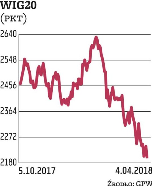 Kolor czerwony wyjątkowo mocno świecił także w Warszawie. Spadki przekraczały 1,5 proc. i pojawiło się nawet ryzyko, że WIG20 zjedzie poniżej psychologicznego poziomu 2200 pkt. Za scenariuszem tym przemawiały także spadki na początku środowej sesji w USA. Ostatecznie jednak poziom 2200 pkt został obroniony, co chyba jest jednym z nielicznych pozytywów sesji. WIG20 ostatecznie stracił bowiem 1,7 proc. Szukając pozytywów, warto także zauważyć, że lepiej zachowywały się średnie i małe spółki. mWIG40 większość sesji spędził nawet nad kreską.