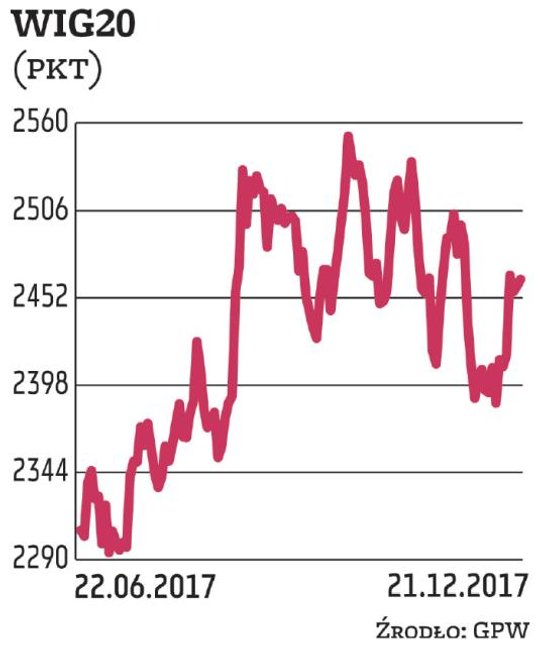 Z technicznego punktu wiedzenia najbliższym oporem na WIG20 jest lokalne maksimum z 19 grudnia na 2479 pkt. Wsparciem jest natomiast czwartkowe minimum na 2450 pkt. Gwiazdą sesji z grona 20 największych emitentów był PKN Orlen. Pod koniec dnia walory giganta drożały o blisko 2,8 proc. W czwartek poinformowano, że PGNiG i PKN Orlen rozpoczęły prace wiertnicze na wspólnej koncesji w Kotlinie w Wielkopolsce. Prace na odwiercie Kotlin-3 potrwają około 90 dni, a planowana głębokość otworu to około 3135 metrów. Sporym wzięciem cieszyły się też papiery Orange Polska i KGHM. Na przeciwległym biegunie znalazły się natomiast Energa, Asseco Poland oraz mBank.
