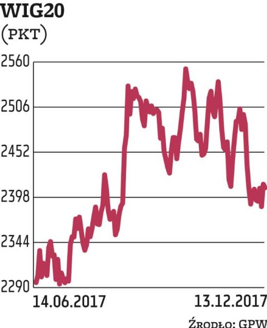Środowa sesja niewiele zmieniła w obrazie technicznym WIG20. W dalszym ciągu ważnym wsparciem jest minimum z 4 grudnia na 2370 pkt.