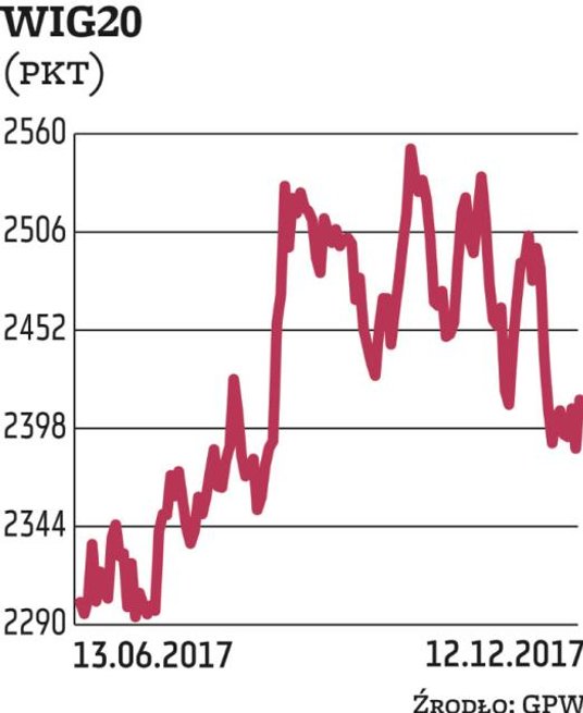 Do południa WIG20 praktycznie był przyklejony do poziomu zamknięcia z poniedziałku. Rynek trwał w zawieszeniu i każdy scenariusz był możliwy, również ten zakładający powrót koloru czerwonego na GPW. Kolejne godziny handlu pokazały jednak, że to nie niedźwiedzie, tylko byki mają tego dnia ochotę pokazać, na co je stać. WIG20 zaczął zyskiwać nawet około 0,8 proc. Dzięki temu nie tylko znów wyszedł powyżej psychologicznej bariery 2400 pkt, ale również był to jeden z lepszych wyników w całej Europie. Oczywiście istniało ryzyko, że wejście do gry inwestorów w Stanach Zjednoczonych może zmienić ten obraz. Nie raz jednak nasz rynek udowodnił, że potrafi zignorować sygnały płynące za oceanu, niestety, nawet te pozytywne. Tym razem jednak tak się nie stało. Amerykanie zaczęli dzień od niewielkich ruchów, ale co ważniejsze, mimo wszystko przeważał tam kolor zielony. To wystarczyło, żeby byki na GPW nie oddały już pola, a dodatkowo w ostatnim fragmencie wykonały ostatni zryw. WIG20 zyskał ostatecznie 1,1 proc. Najsłabiej prezentowały się małe spółki. Ich indeks sWIG80 większość dnia spędził pod kreską.