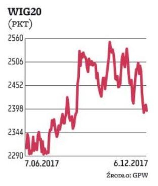 Ostatecznie stracił 0,5 proc. i zatrzymał się na poziomie 2394 pkt. Obroty przed fixingiem dla WIG wyniosły 980 mln zł, z czego 722 mln zł to zasługa 20 największych emitentów. W ciągu dnia WIG20 tracił nawet ponad 1 proc. i znajdował się na 2383 pkt.