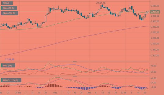 Mały wzrost, ale cieszy. Zwłaszcza, że w połowie sesji WIG20 spadał do 2472 pkt. Indeks blue chips ma za sobą cztery wzrostowe sesje z rzędu i spore szanse powrotu nad pułap 2500 pkt. Przebicie tego ostatniego byłoby dobrym wstępem do rajdu św. Mikołaja, który daje nadzieje na pokonanie szczytu hossy 2566 pkt jeszcze w tym roku. Warto dodać, że w środowym wyjściu na plus pomógł WIG20 bank PKO BP, który jest największym udziałowcem portfela (15,85 proc.) i w końcówce notowań ruszył na północ.10 z 20 największych spółek kończyła natomiast sesję na minusie